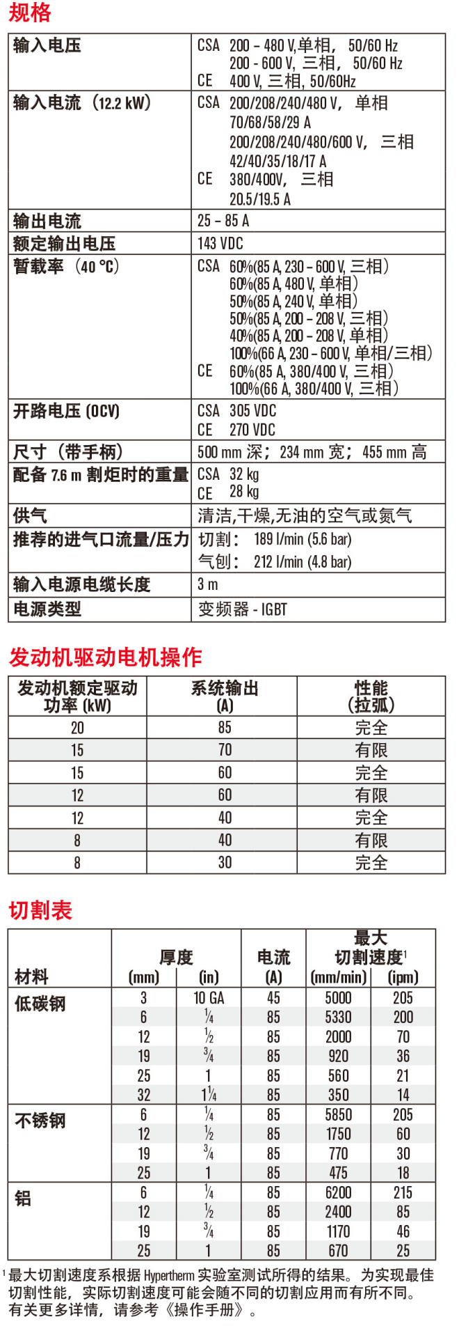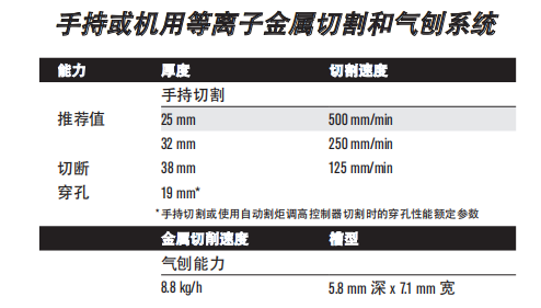 ? 切割速度快:在切割 12 mm 低碳鋼時(shí),切割速度比火焰切割快 150%。 ? 獨(dú)特切割和氣刨質(zhì)量,減少了打磨和邊緣處理的時(shí)間。