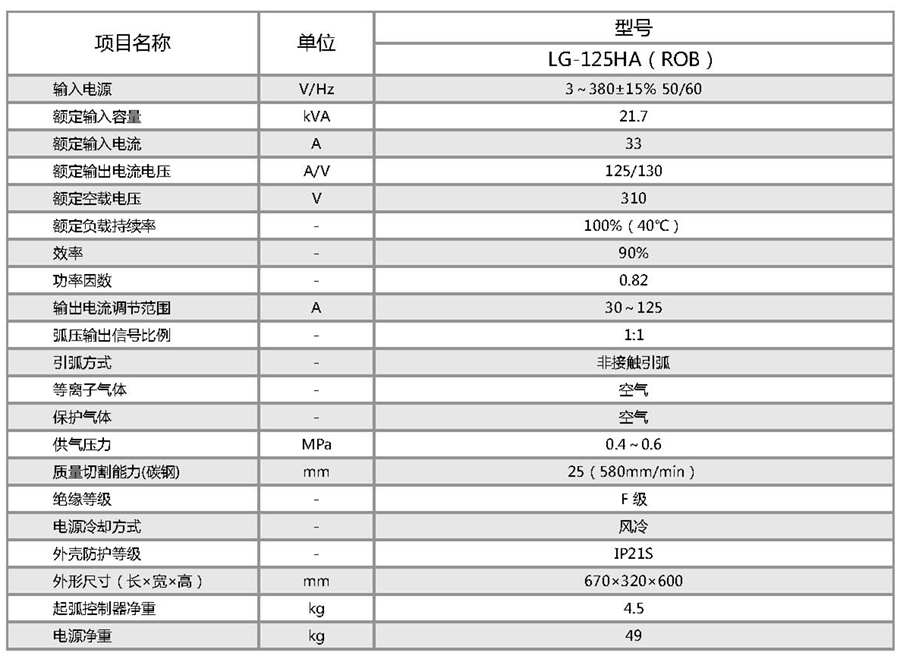 LG-125HA (ROB) 機器人專用逆變式等離子切割機