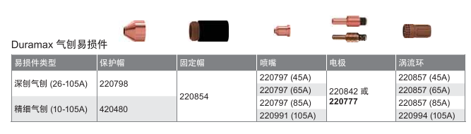 保護(hù)帽壽命短,和電極、噴嘴使用搭配消耗比例高