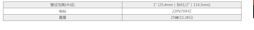 型號上有"M"標記的機器我們提供兩種類型的夾具:標準型和加厚型。其中標準型用于夾持短管,加長型用于長度為4(101.6mm)及以上的管子。我們的機器帶有可調(diào)速電鉆,可以在加載條件下保持恒定速度,延長刀具壽命。